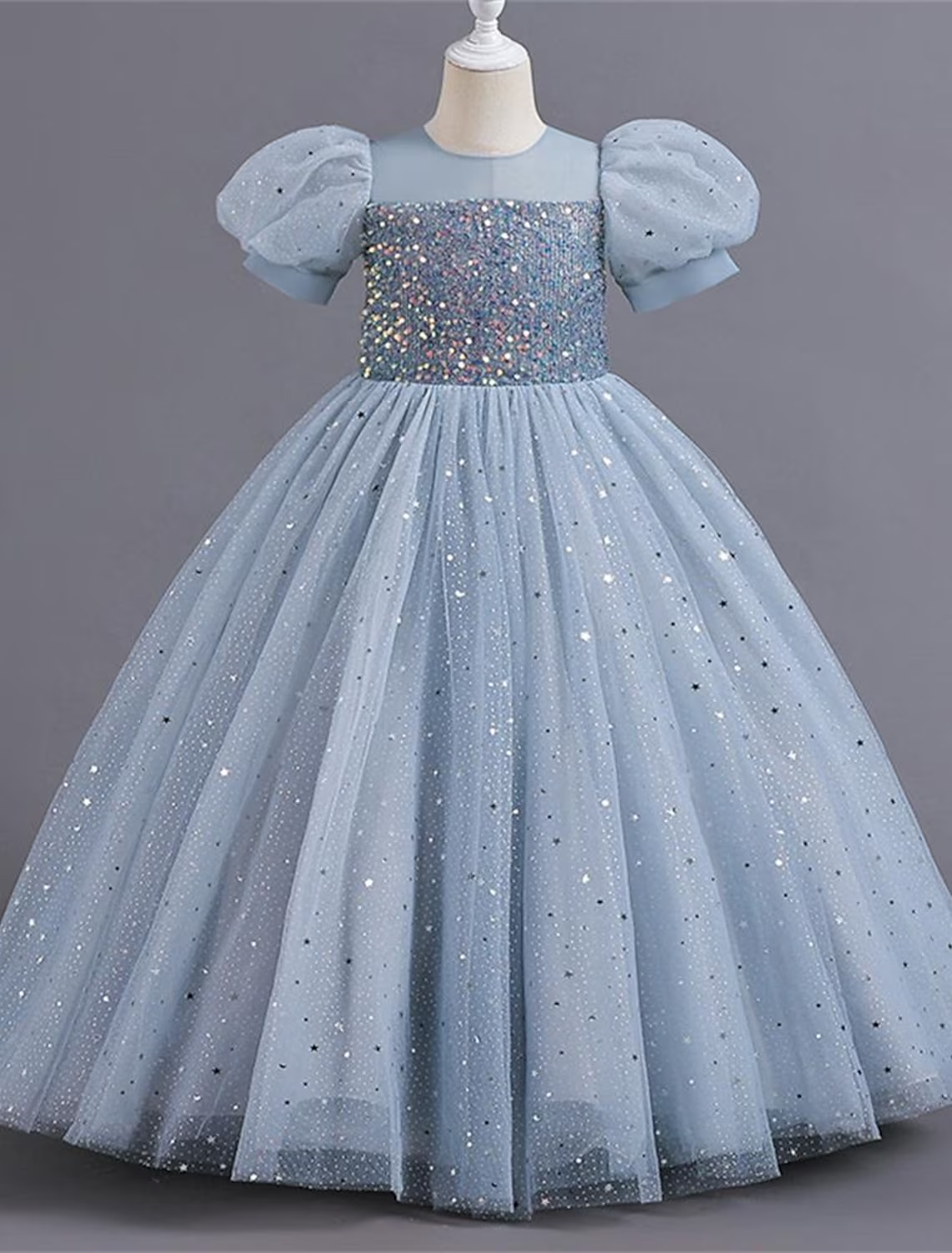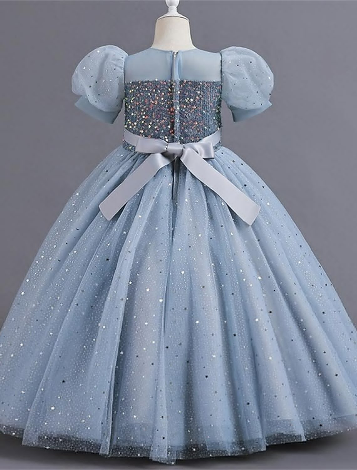 Kids Girls' Party Dress Solid Color Flower Short Sleeve Performance Wedding Sequins Elegant Princess Polyester Maxi Tulle Dress Summer Spring 4-13 Years Multicolor White Pink