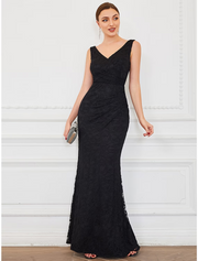 Mermaid / Trumpet Evening Gown Plus Size Dress Formal Floor Length Sleeveless V Neck Lace V Back with Pure Color