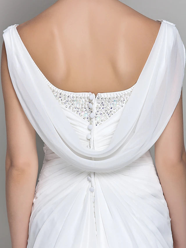 Sheath / Column Mother of the Bride Dress Vintage Inspired Cowl Neck Floor Length Chiffon Sleeveless with Buttons Criss Cross Crystals